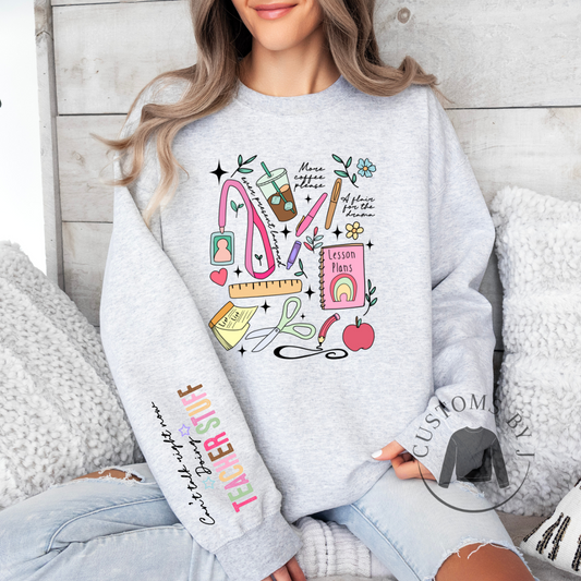 Can't Talk Right Now Busy Doing Teacher Stuff Sweatshirt, Cotton, Polyester, Crewneck, Unisex Sweatshirt